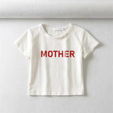 Mother Baskılı Beyaz Crop