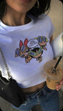 Powerpuff Girls 'Super Cute' Baskılı Beyaz Crop