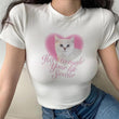 Pretty Cat & Heart Baskılı Beyaz Crop