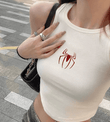 Spider Nakışlı Beyaz Halter Yaka Kaşkorse Crop Top