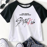 Stray Kids Baskılı Reglan Kol Beyaz Crop