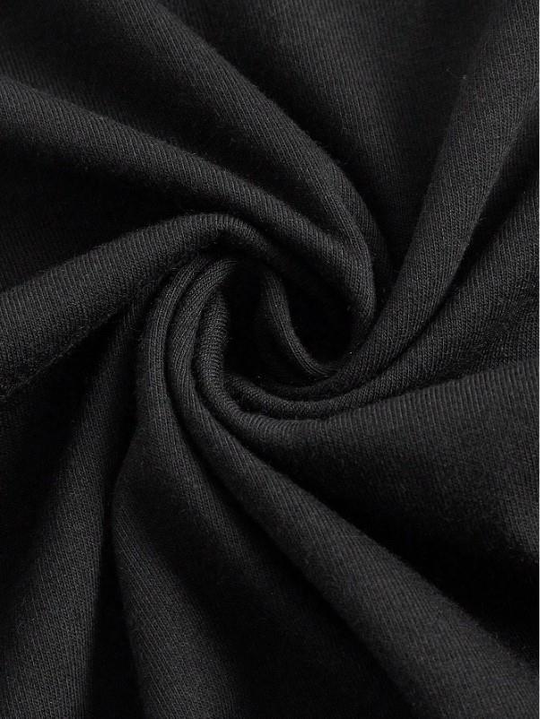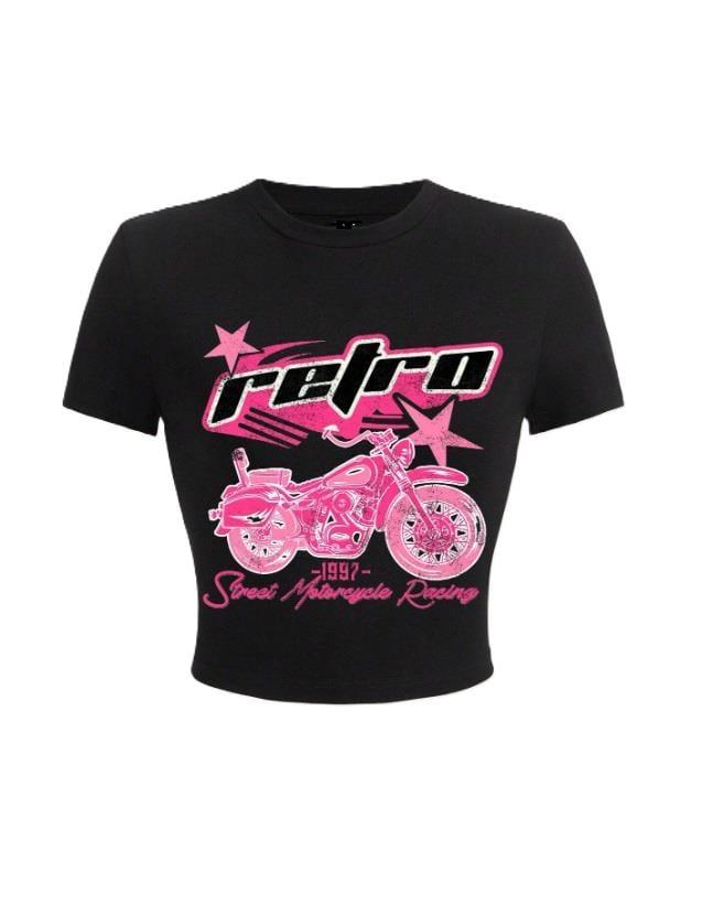 Y2k Letter & Motorcycle Baskılı Siyah Crop