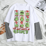 Grinch Christmas Baskılı Fake Sleeves Unisex Beyaz T-shirt