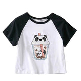 Buddy Bears Panda Baskılı Reglan Kol Beyaz Crop