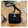 Confused Skeleton Baskılı Cep Detaylı Unisex Kanvas Siyah Omuz Çantası