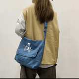 Confused Skeleton Baskılı Vintage Unisex Kot Mavi Postacı Çantası