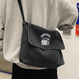 Game Over '666' Baskılı Vintage Unisex Gri Kot Postacı Çantası