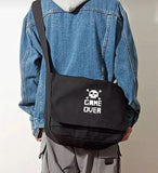 Game Over Baskılı Unisex Siyah Postacı Çantası