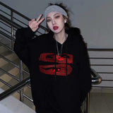 Hypnosis Eyes Baskılı Siyah Unisex Oversize Kapüşonlu Sweatshirt