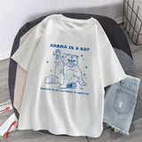 Karma Is A Cat Baskılı Beyaz Unisex Oversize T-shirt