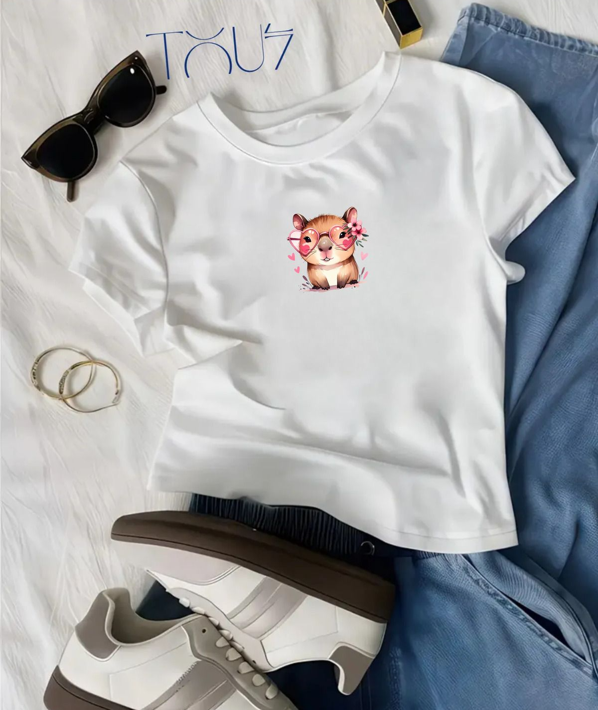 Kemer Boy CapiBara Baskılı Crop Bluz