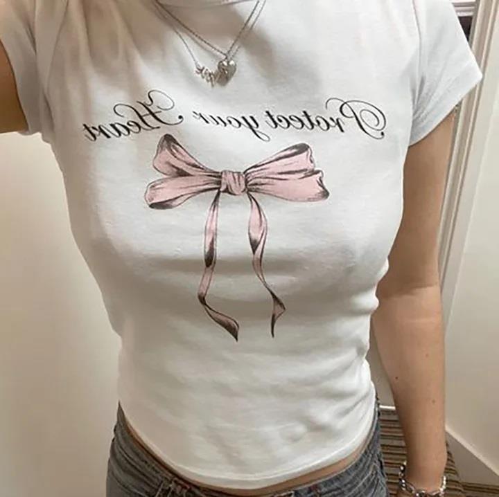 Kemer Boy Protect Your Heart Baskılı Beyaz Crop