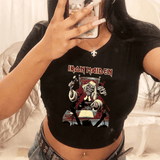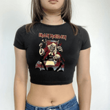 Rock Serisi Iron Maiden Logo Baskılı Siyah Crop