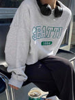Seattle Baskılı Gri Unisex Oversize Bisiklet Yaka Sweatshirt