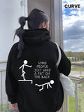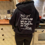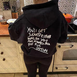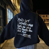 Slogan Baskılı Siyah Kapşonlu Sweatshirt