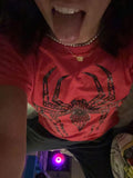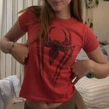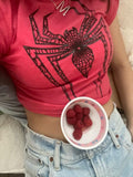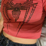 Spider Baskılı Kırmızı Crop Bluz