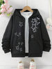 Baskılı Fermuarlı Oversize Unisex Kapüşonlu Hırka