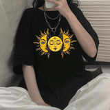 Sun And Moon Oversize Unisex Siyah T-Shirt