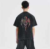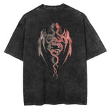 Twin Dragon Sırt Baskılı Unisex Eskitme T-shirt