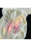 Y2k Butterfly Sırt Baskılı Oversize Unisex Beyaz Kapşonlu Hoodie Sweatshirt