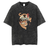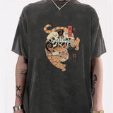 Yıkamalı Skeleton Cat Unisex Eskitme T-shirt