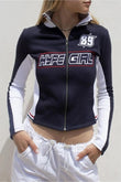 Touz Hype Girl Baskılı Fermuarlı Siyah Crop